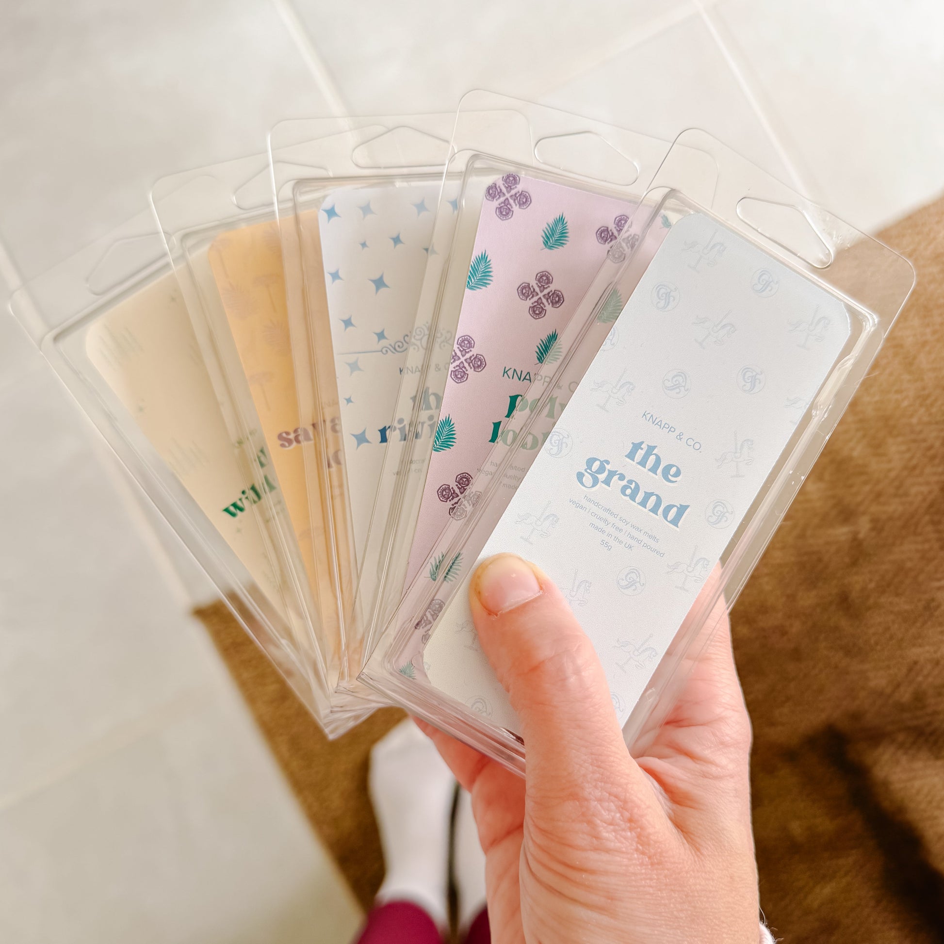 Our 5 melt snap bars are made with soy wax and highly fragranced with your favourite scents! Simply snap off one bar and pop it on top of your burner to fill your room with magic. Please do not leave your burner unattended at any time. Please use a heat proof surface when placing your burner.
