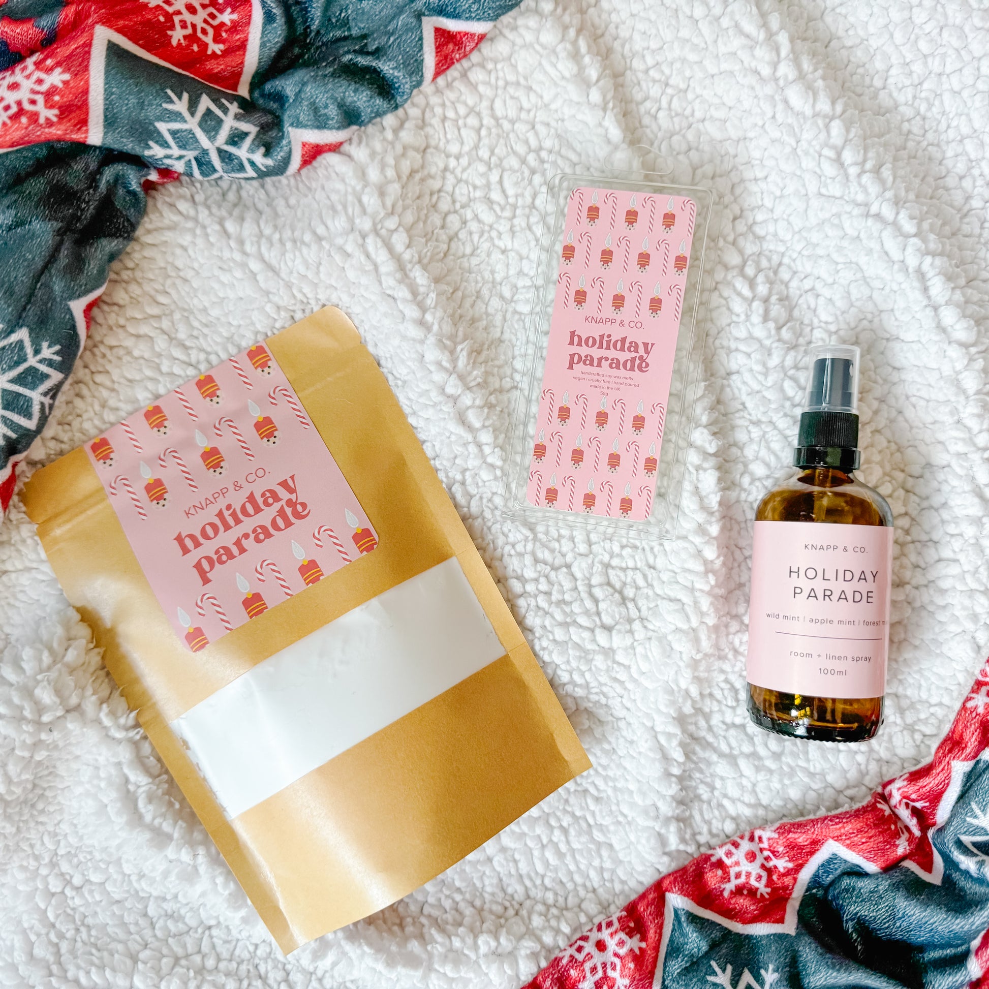 Inspired by the scent pumped out during the Christmas parades, Holiday Parade is the most beautiful, authentic, peppermint scent! Multiple other mint aromas ground it so that it isn't too harsh a peppermint, and a splash of vanilla adds some sweetness too.